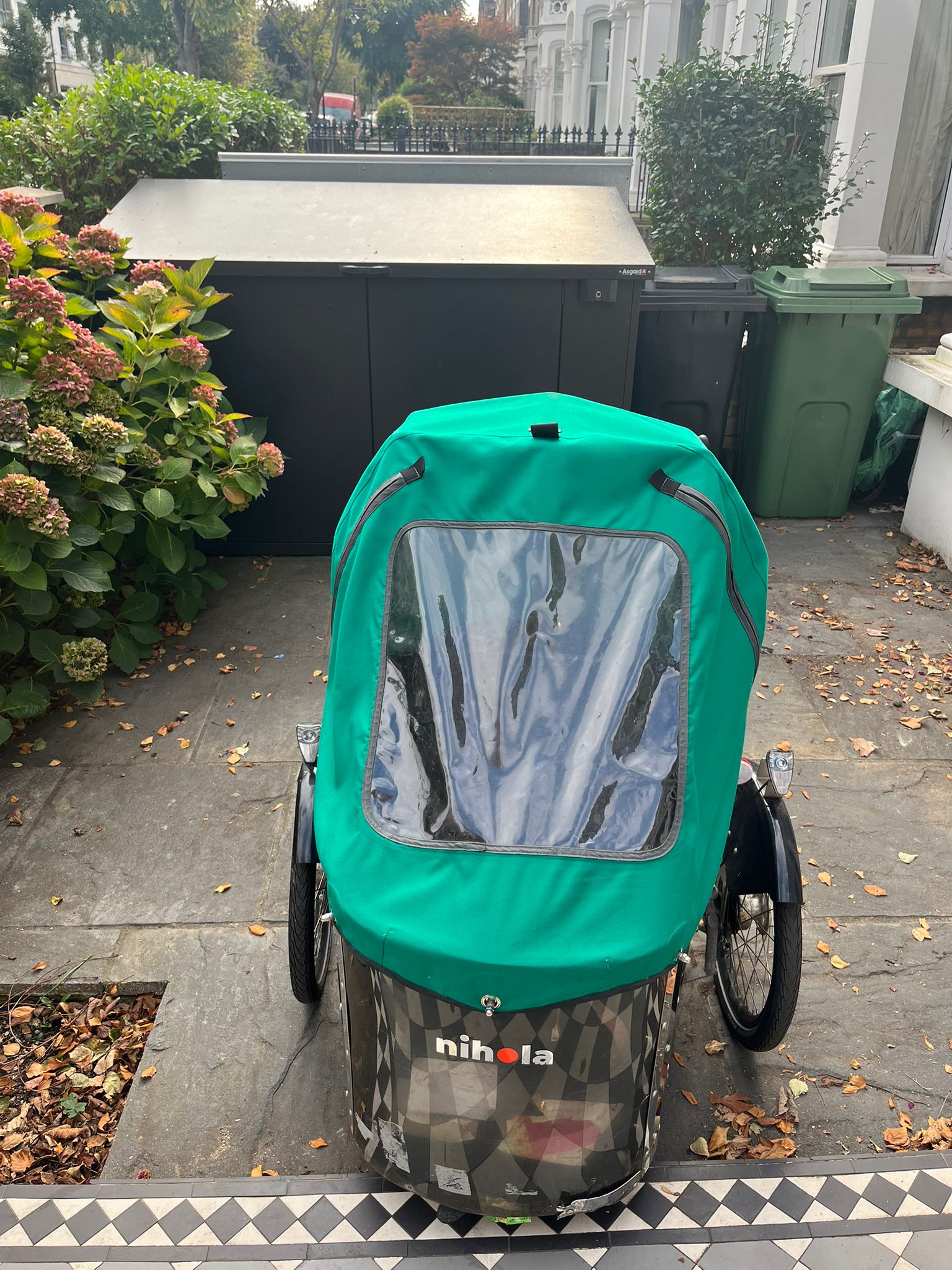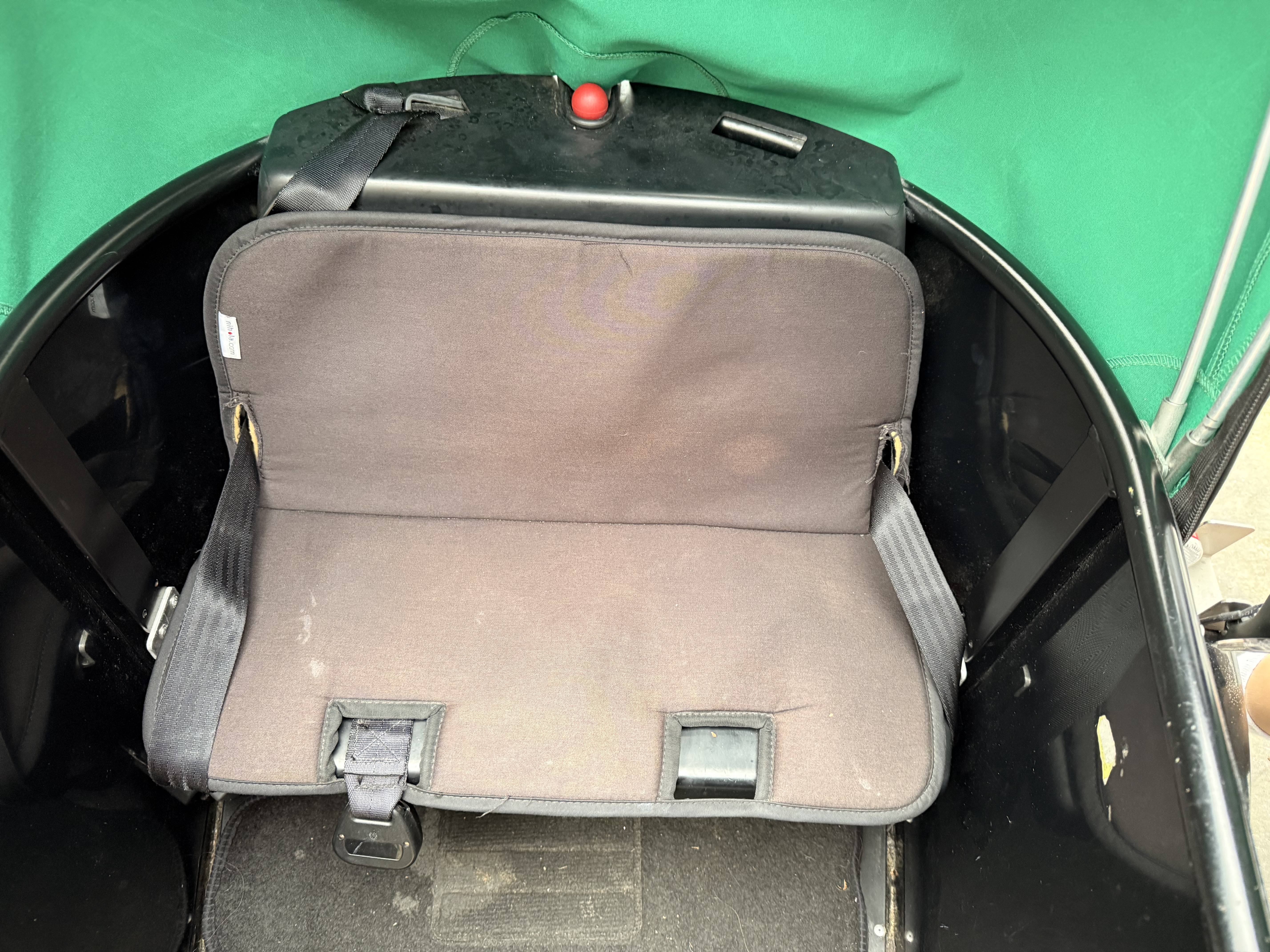 The Family cargo bike can carry up to 100 kg in the cabin and there is space for 2 children of up to the age of 7-8 years old on the bench.